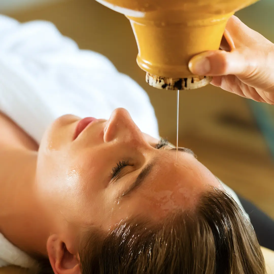 Se utilizan aceites esenciales naturales, seleccionados según tu dosha (tu tipo de energía personal en el Ayurveda), que son aplicados con movimientos suaves y rítmicos en el rostro, el cuello y el cuero cabelludo, con el objetivo de estimular la circulación, oxigenar la piel y mejorar el flujo de energía prana (energía vital) en el cuerpo.